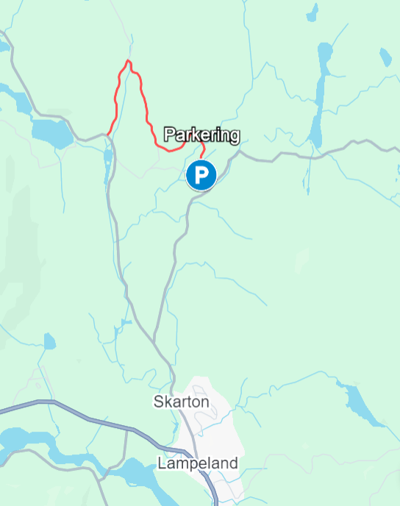 Kart som viser vei til parkering på Hoensvannet (SS1). Dette er nesten inne ved Myhrespiten skileik: